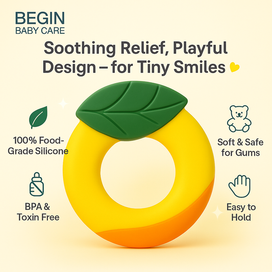 Orange Silicone Baby Teether Toy with EasyGrip for 4+ Months Old, from Begin Baby Care