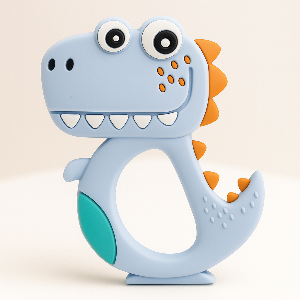 Bring a smile to teething time with our adorable Blue Dinosaur Silicone Baby Teether!