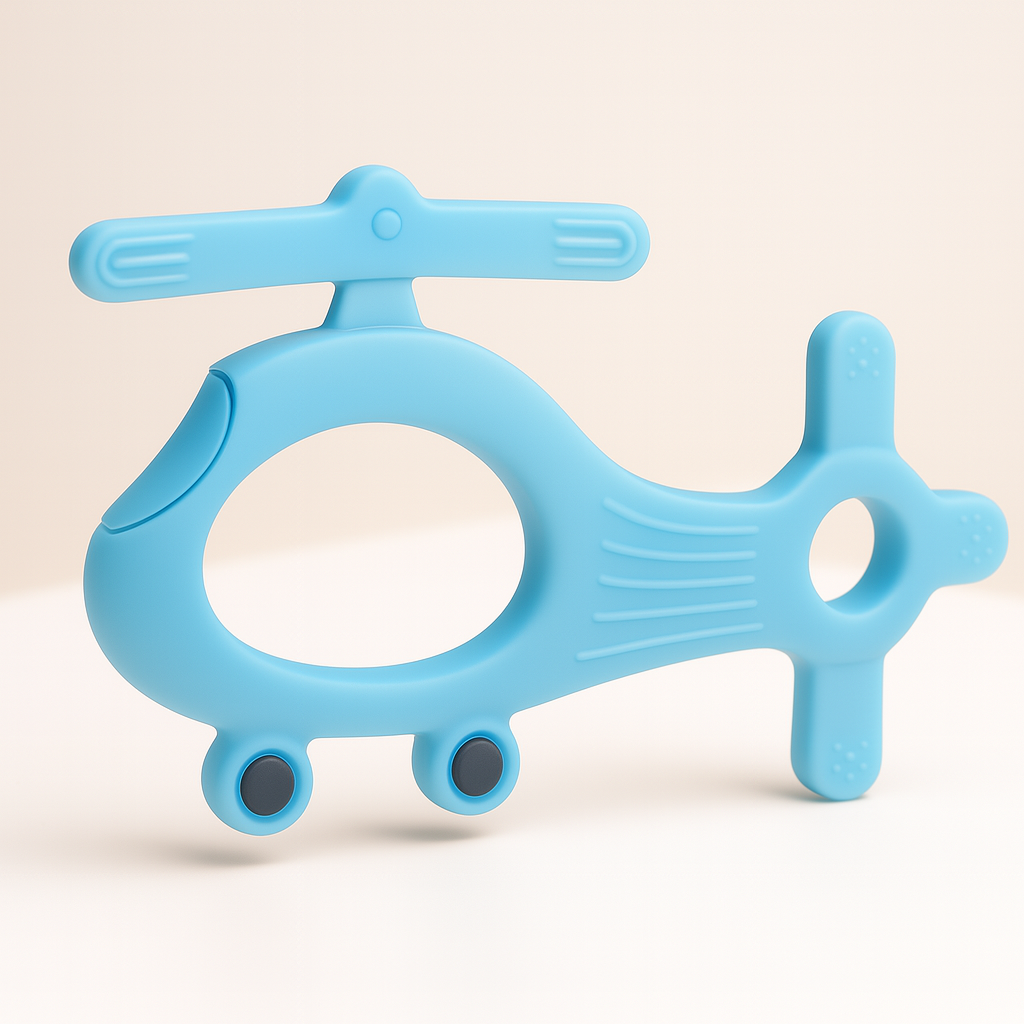 Soothe your baby’s gums with the Blue Helicopter Silicone Teether by Begin Baby Care – safe, BPA-free, and designed for tiny hands. Perfect for 0–6 month old.